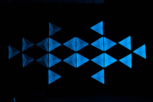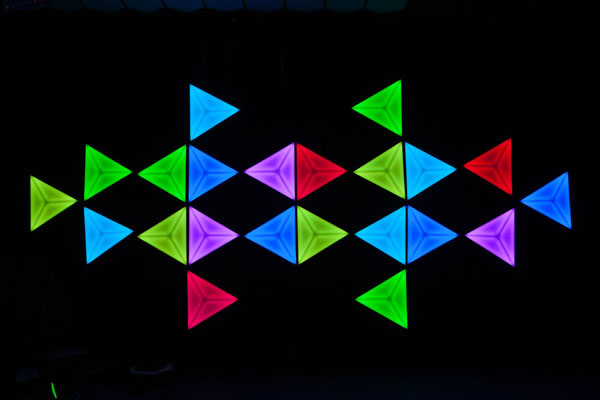 LED naked eye 3D triangular light, the plane presents three-dimensional, science fiction, fashion, color heart changes.